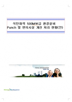 500MW-class coal-fired power plants to improve environmental practices in the status of process and facilities Punch//¼®ÅºÈ·Â 500MW±Þ ȯ°æ¼³ºñ Punch ¹× ÆíÀǽü³ °³¼± ó¸® ÇöȲ »ç·Ê